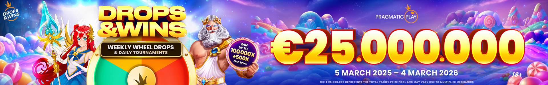 From 19 November 2025 to 4 March 2026, join the network-wide Drops & Wins promotion by Pragmatic Play and enjoy two exciting ways to win — with cash prizes and no wagering requirements.